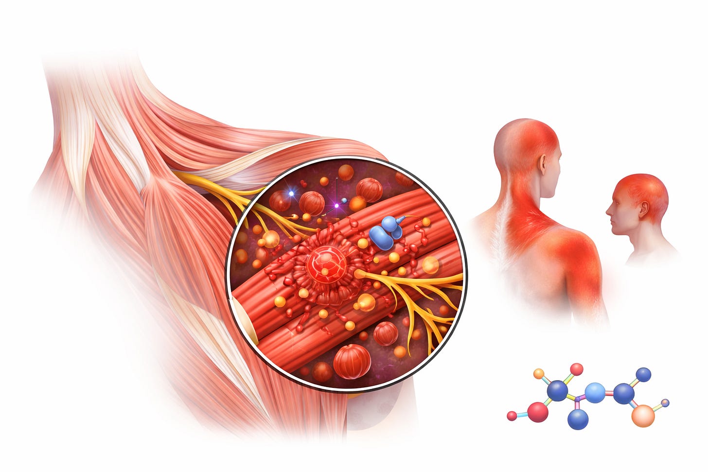 Deze combinatie van spanning en verminderde doorbloeding zorgt ervoor dat het weefsel gevoeliger wordt en pijnsignalen worden versterkt. In en rondom triggerpoints worden bovendien verhoogde concentraties gevonden van stoffen die pijn en gevoeligheid beïnvloeden, zoals bradykinine en substance P.